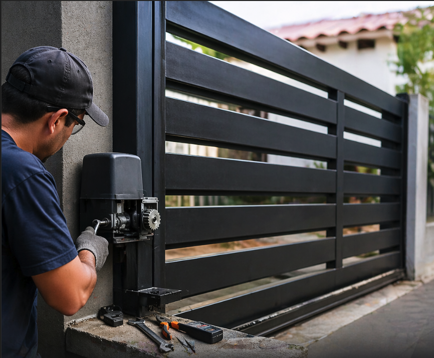 Instalamos portones corredizos manuales y automáticos con estructura reforzada y componentes de calidad: vainillado, flejes de acero inoxidable, manijón, columna de cierre, guías y estabilizadores. También realizamos reparación y mantenimiento para extender la vida útil de cada sistema.