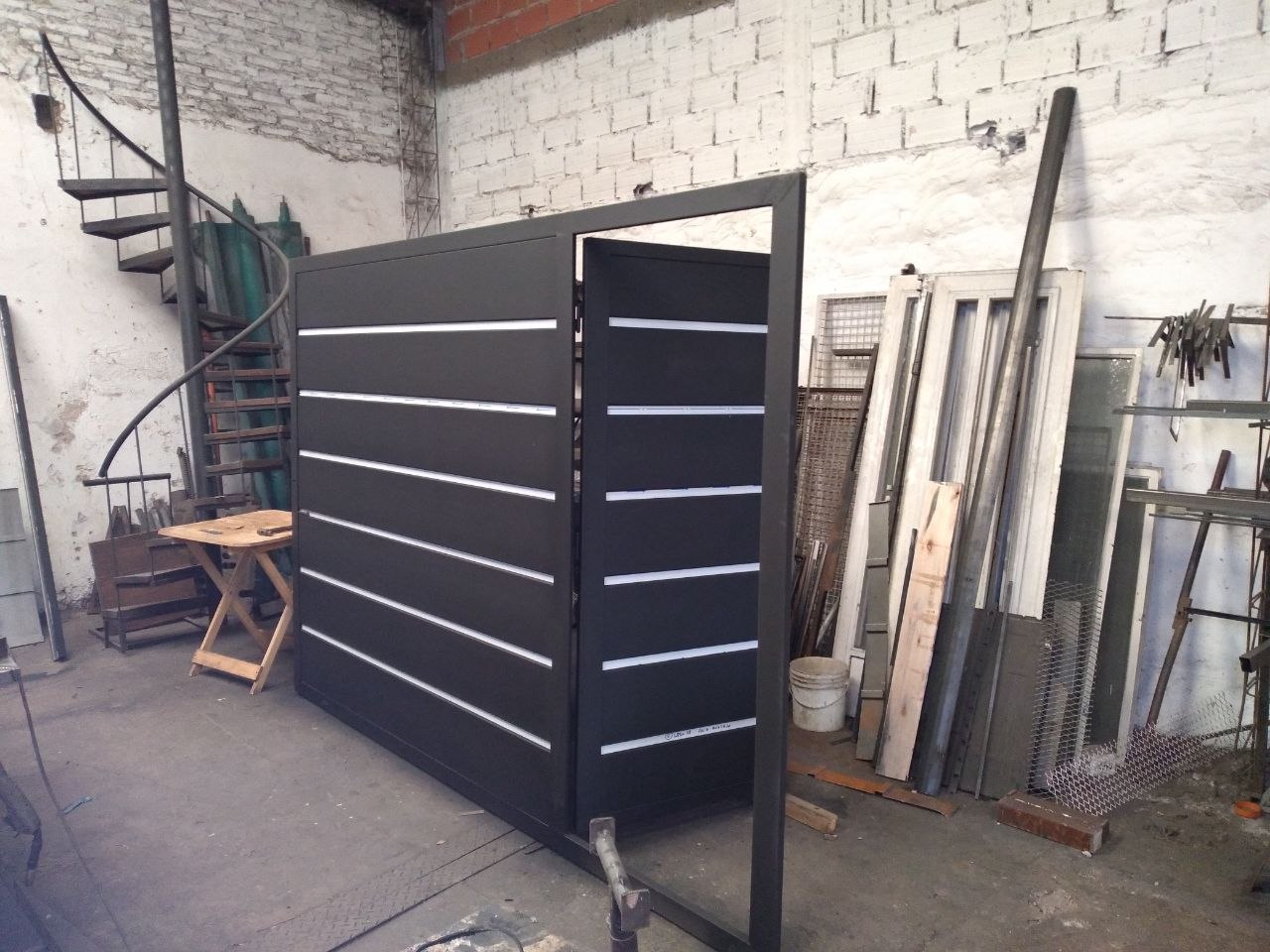 Trabajos a medida con terminaciones de calidad, incluyendo portones con vainillado y flejes de acero inoxidable, manijón, columna de cierre, estabilizador, guía para amurar al piso, cerradura y pintura final